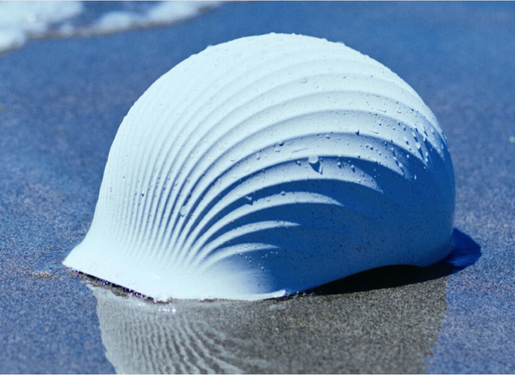 Una gran cantidad de conchas de vieiras desechadas ha cubierto un vertedero en Sarufutsu Village, Japón, en concreto la especie Patinopecten yessoensis. La empresa emergente japonesa Quantum se dio cuenta de esto y se acercó a Sarufutsu Village y a TBWA HAKUHODO para buscar la forma de reducir la cantidad de cáscaras desechadas en el área: reciclar las conchas de vieiras y convertirlas en cascos ligeros y resistentes que los trabajadores y empleados puedan usar diariamente. Juntos, desarrollaron SHELLMET, un casco protector para la cabeza hecho de plástico ecológico mezclado con conchas de recicladas.