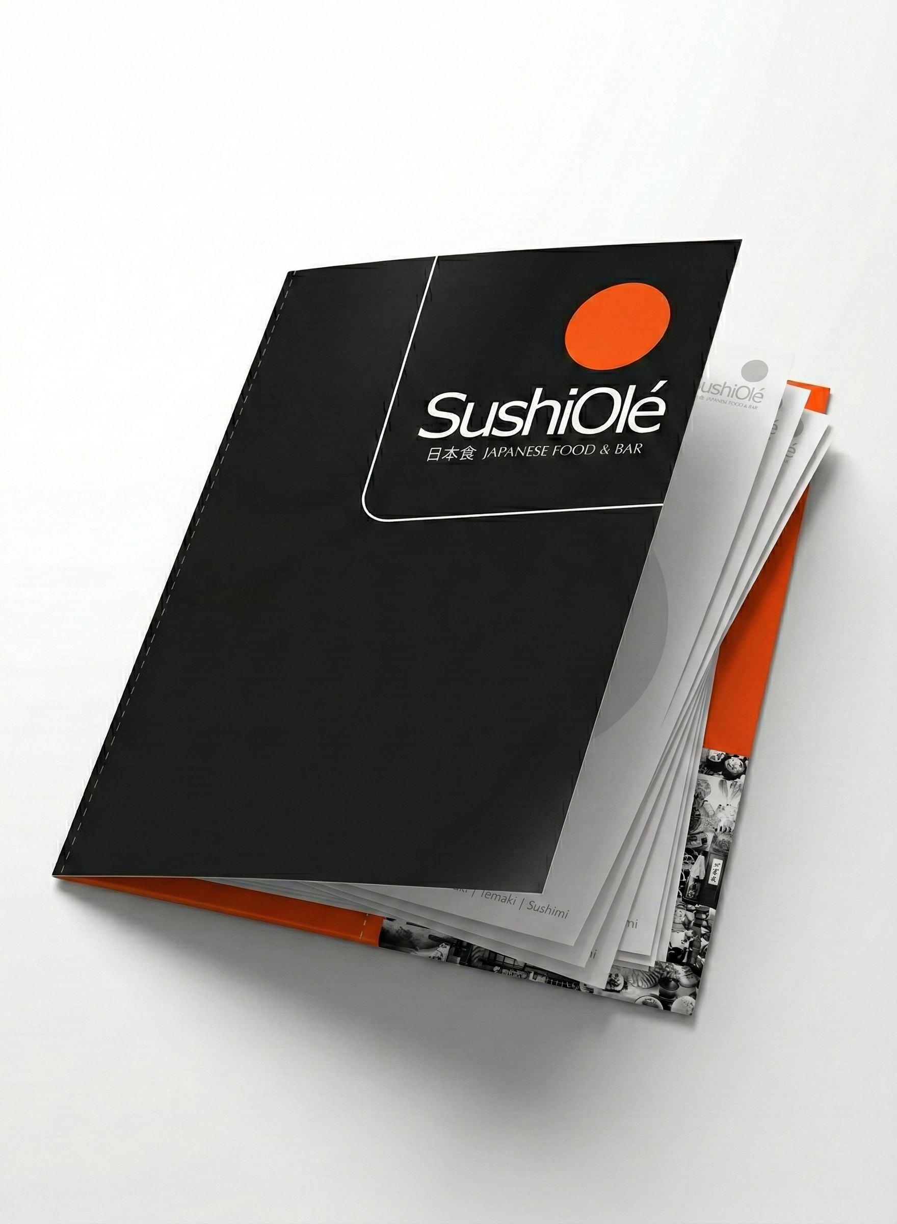 - Black — The dominant brand color, used as a flat background canvas for graphic assets and on interior walls, often paired with the “SushiOlé” wordmark or the Japanese lotus tree motif.