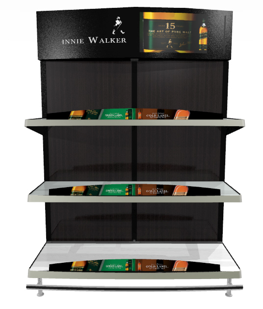 Jhonnie Walker is one of the most famous whiskies and spirits around the world. The brand, represented by DIAGEO in several countries ask us for an “aggressive but elegant” concept of displays and commercial furnitures for liquor stores, supermarkets and airports duty free zone.
