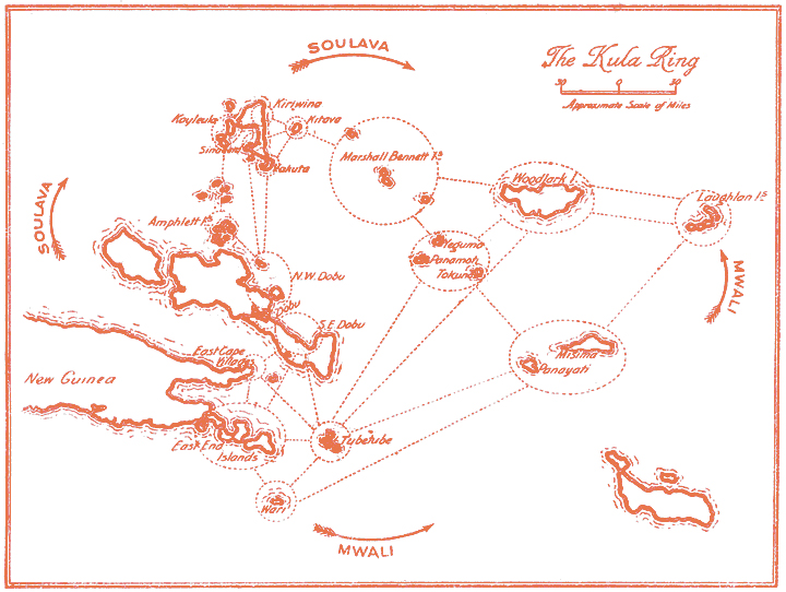 Entre los años 1914 y 1918, durante la primera guerra mundial, Malinowski quedó atrapado en Papúa (actual Papúa Nueva Guinea). Estando allí fue invitado a las islas Trobianas, un archipiélago formado por varias islas, a investigar una ceremonia para difuntos, pero su atención se desvió hacia un ritual más trivial. Malinowski observó que cada tanto los hombres construían, durante semanas, unas barcas con las que emprendían un arriesgado viaje de cientos de kilómetros hacia otras islas del archipiélago.