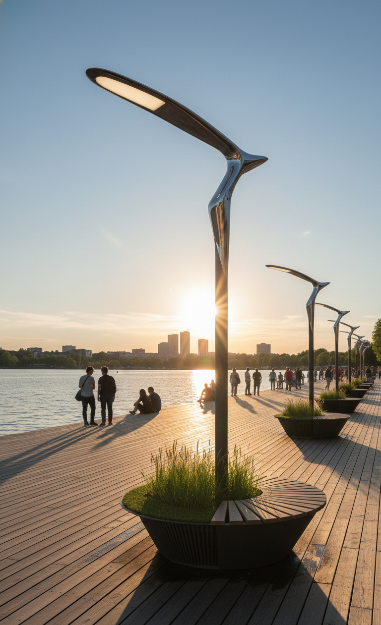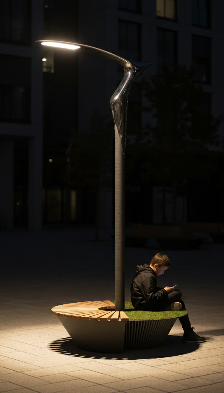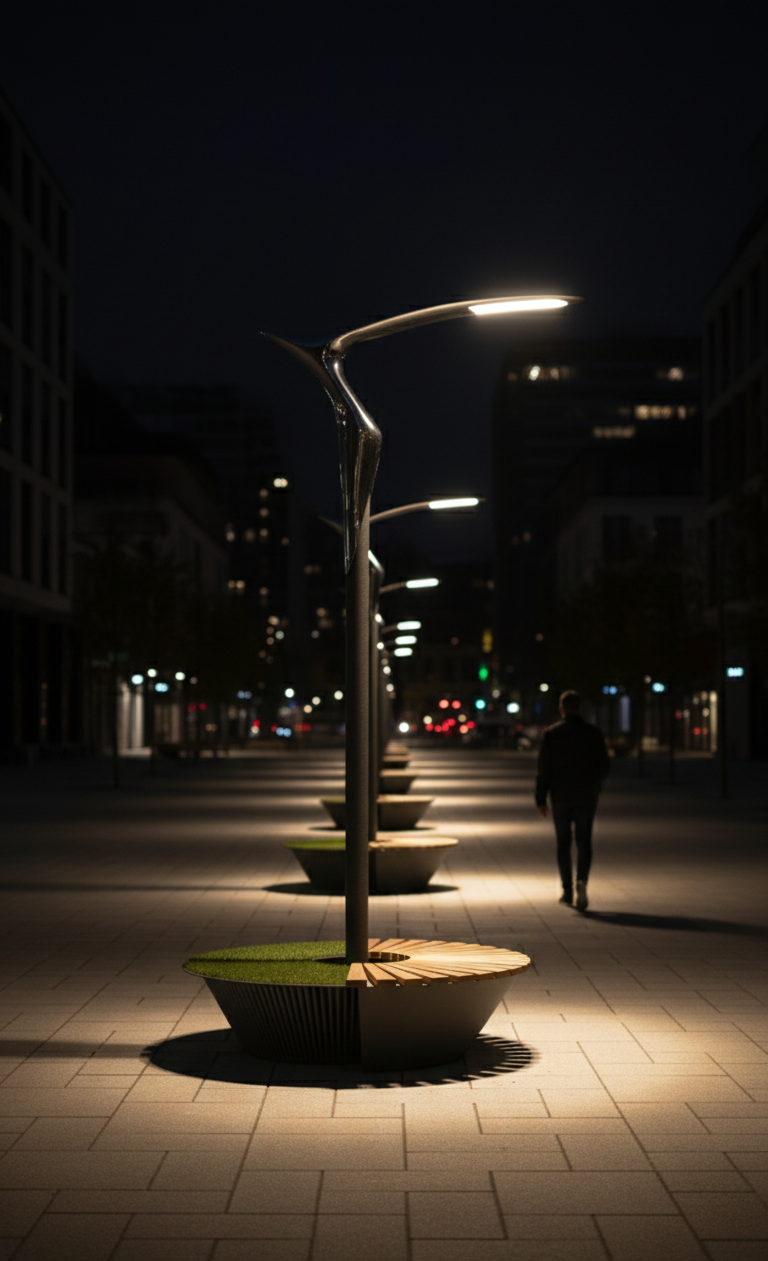 This approach enables an efficient, aesthetic, and biomimetic public lighting system that contributes to energy savings and urban environment regeneration.