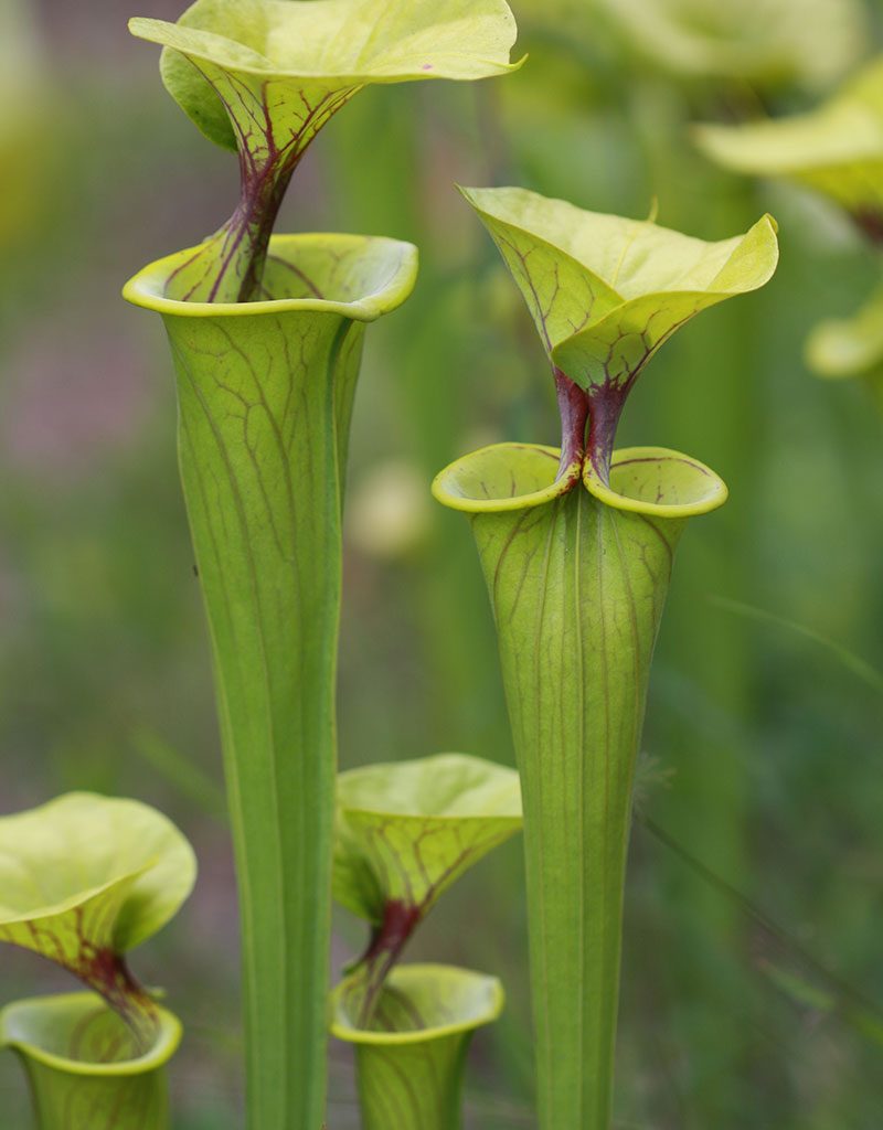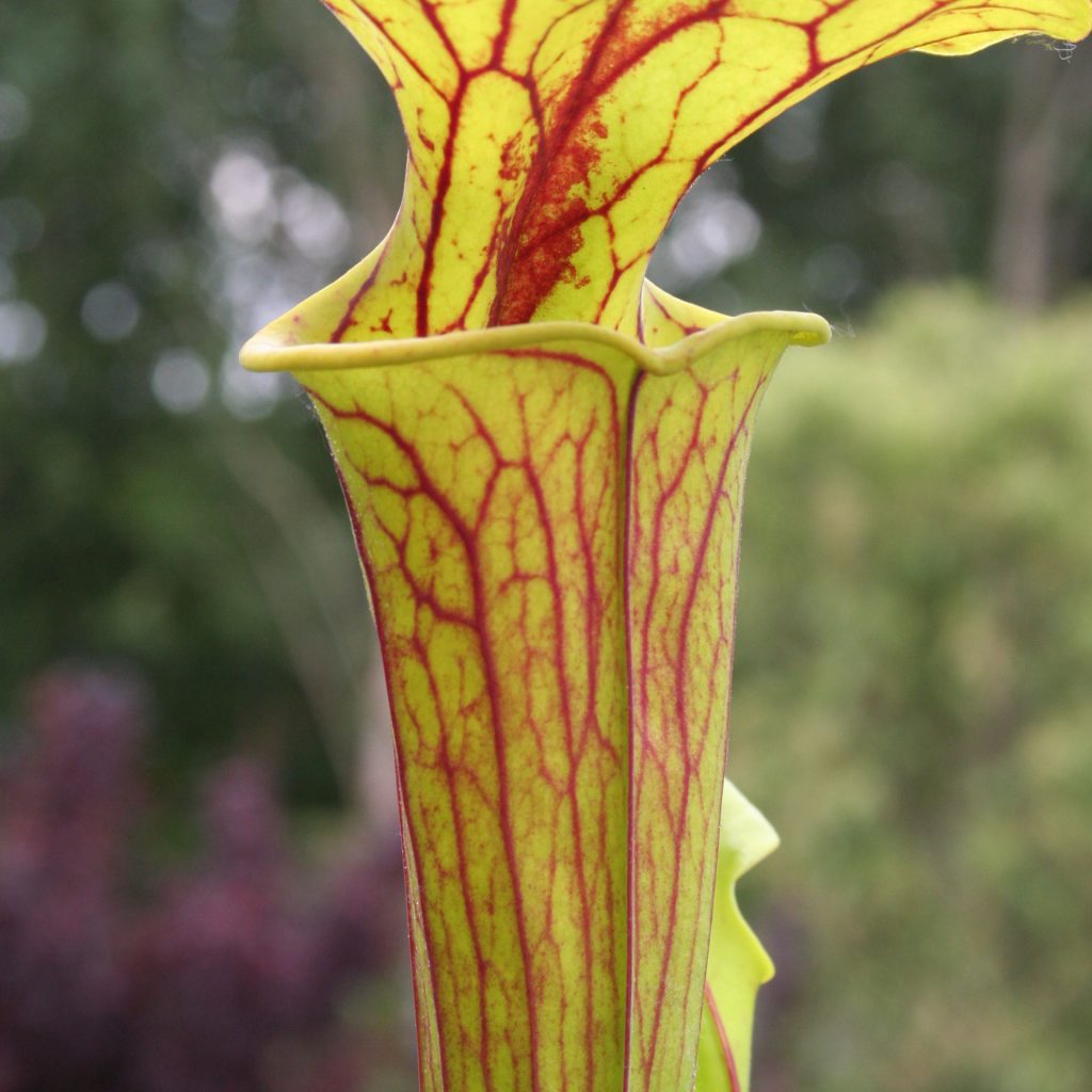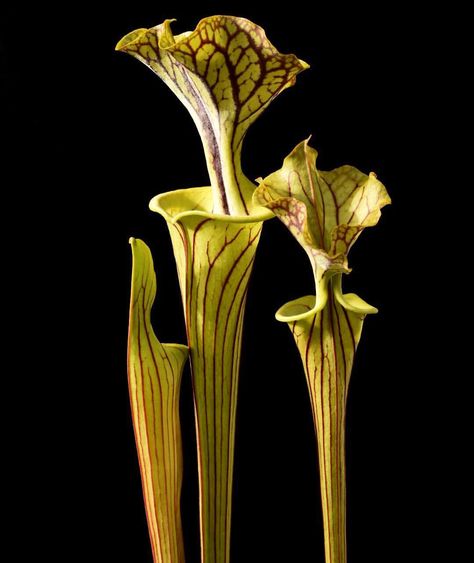 Sarracenia Flava grows in nutrient-poor environments, optimizing resource capture through two strategies: photosynthesis and insect digestion. Its structure, with a long funnel-shaped cup and a leaf-like parasol, allows it to capture light, collect water, and use gravity and prey attraction to survive in hostile habitats.