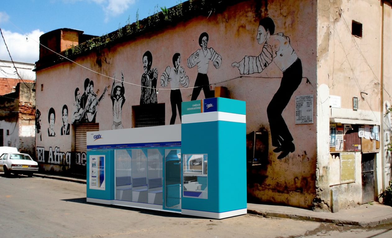 These public telephone booths, called CDC (CANTV Communication Centers), had to be designed based on a modular system in order to be scaled and adjusted depending on places and users. In addition, they had to be resistant to the natural elements and to vandalism. And finally, they had to include all the facilities to make it comfortable for users: light, air conditioning, acoustic and thermal insulation.