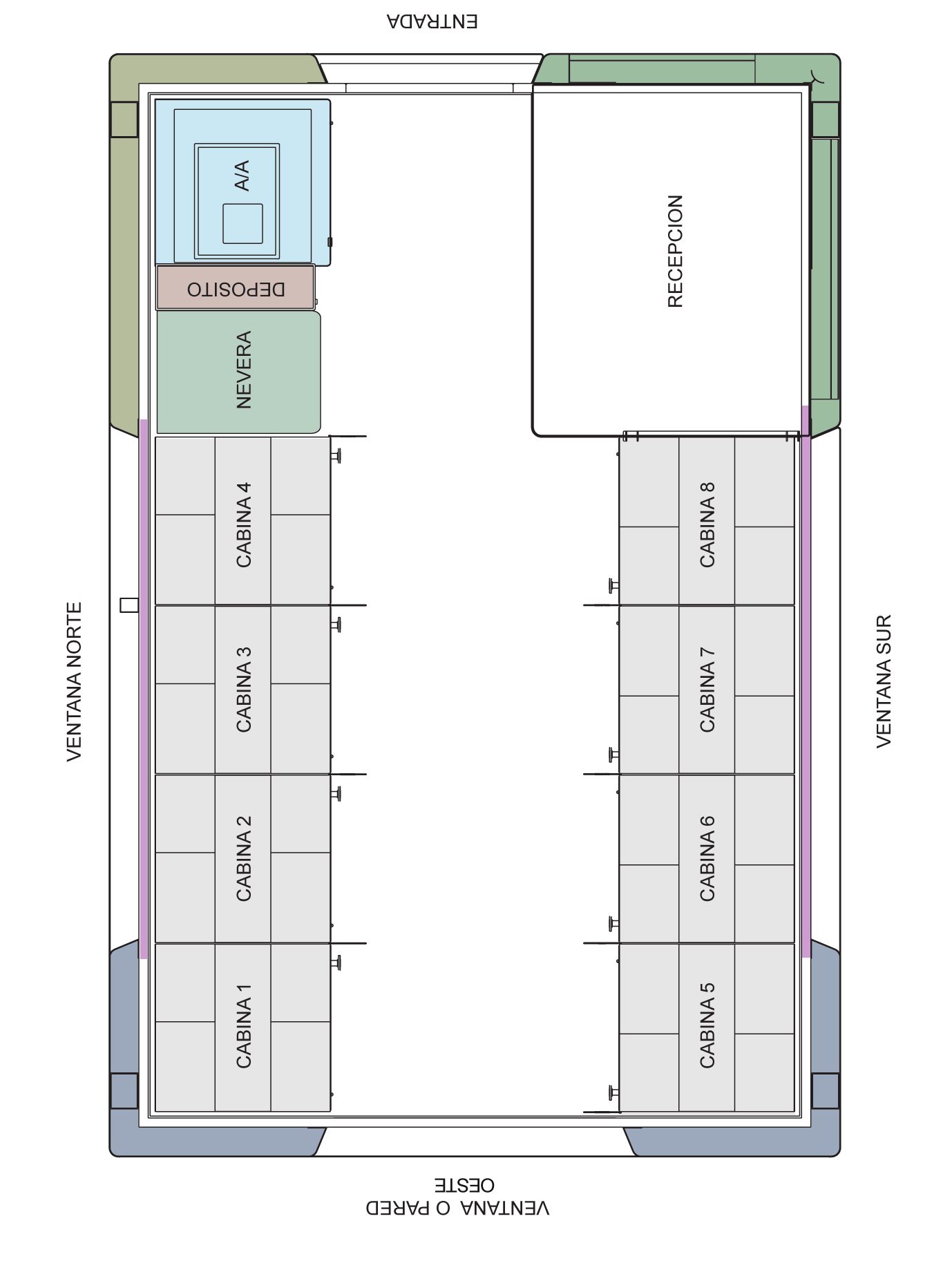 Two types of CDC were designed. The open CDC09 for indoor spaces, which included eight boxes and a reception kiosk, with a total area of ​​3 x 5 meters long (above). And the CDC09B, for outdoor spaces, totally autonomous, with 3 x 6 meters long, which included a space for vending machines and the air conditioning and cleaning unit (below).