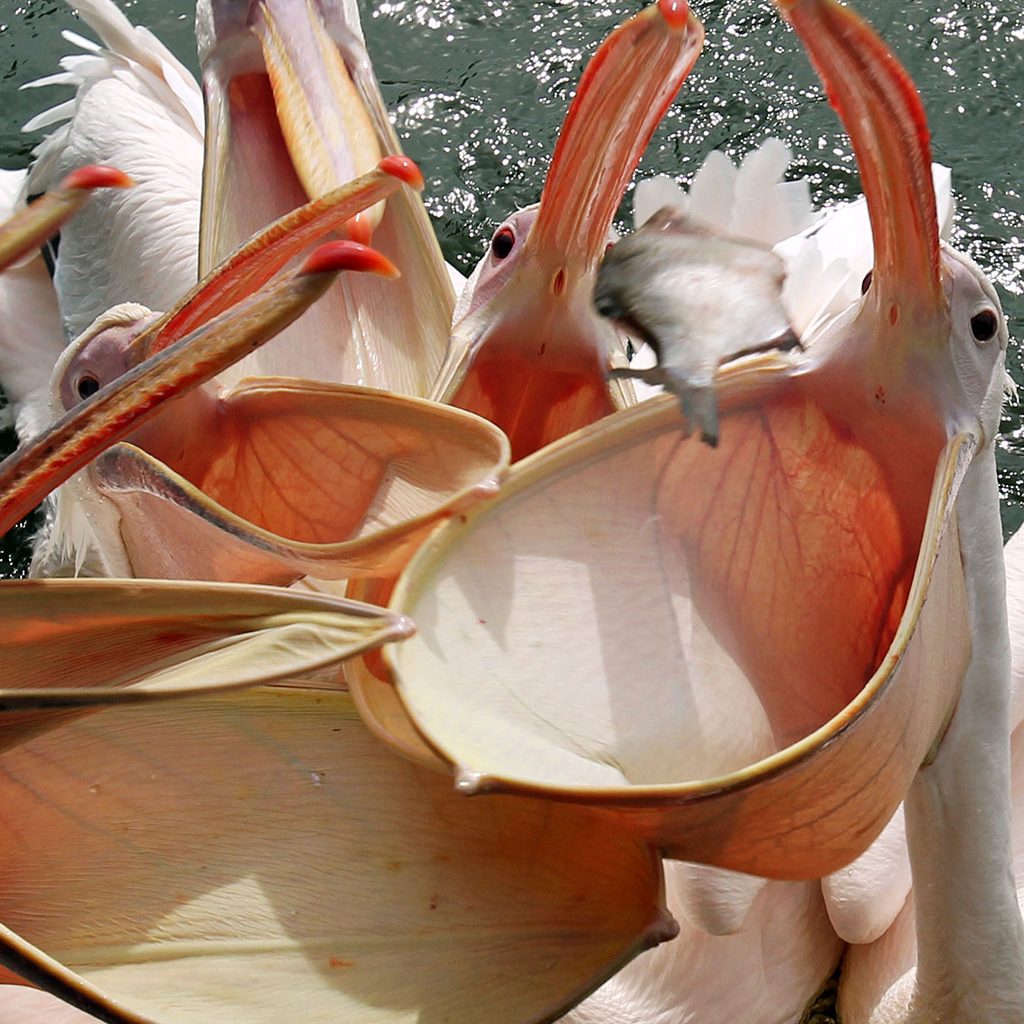 El saco gular del pelícano es una membrana elástica bajo el pico capaz de: