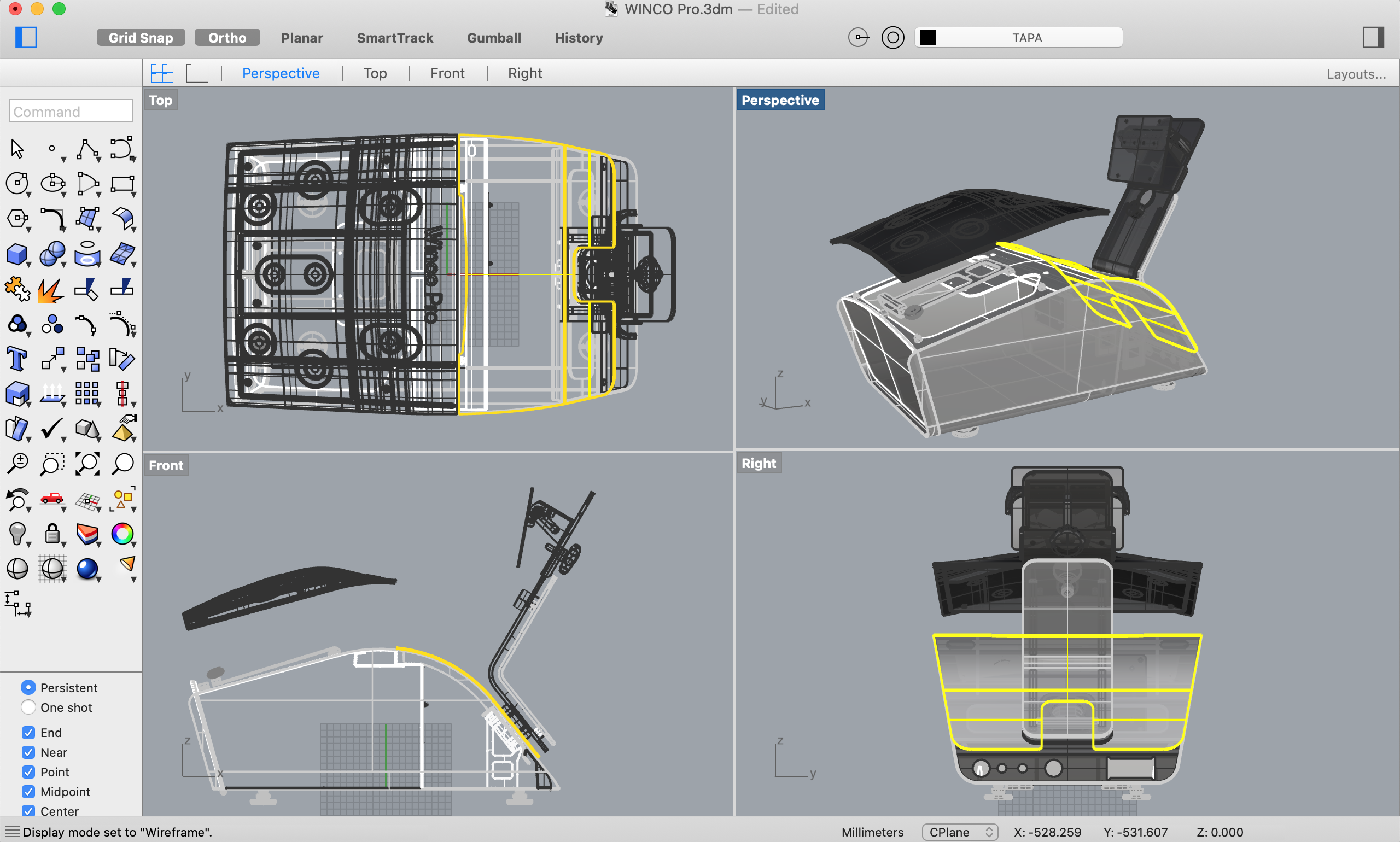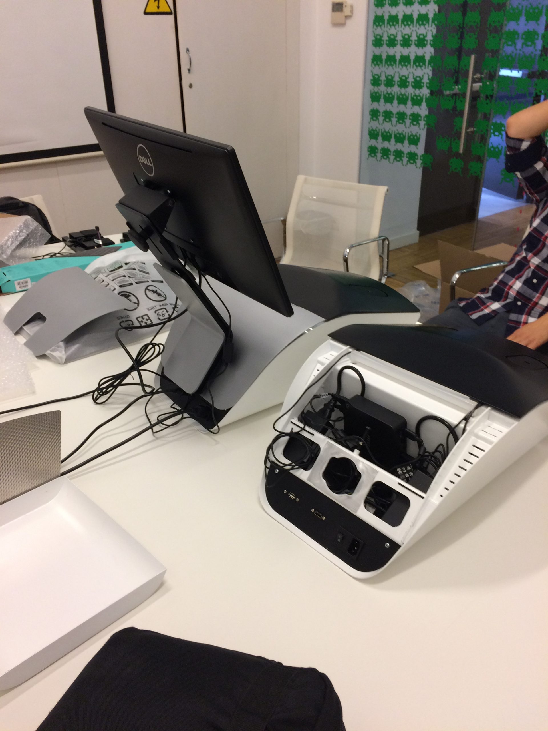 All 3D modeling was made in Solid Works and Rhinoceros and prototyped from paper to aluminium. All the engineering, software and hardware interfaces and electronic components was a joint work between Designers and Medical Simulator engineers.
